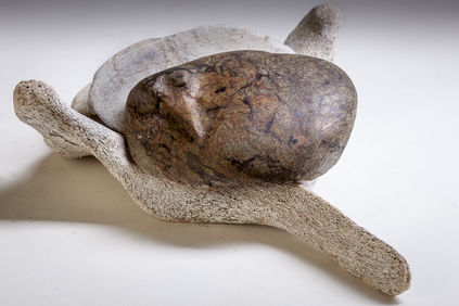 Stones have to speak to me for inspiration. I find it most challenging to work with pre-cut material. I am an artist who prefers naturally broken stones that stimulate my imagination, be it soapstone, alabaster, marble, or harder materials such as limestone, sandstone, basalt, or granite. I am very fond of working with river rock which comes in a surprising array of colors, shapes, and sizes. Collecting them is one of my favorite pastimes when out in nature. Every raw piece I find has to guide me in the right direction prior to touching any tools for the creation of a new sculpture. Some trigger a spontaneous image while others may take weeks, or even months to come alive.